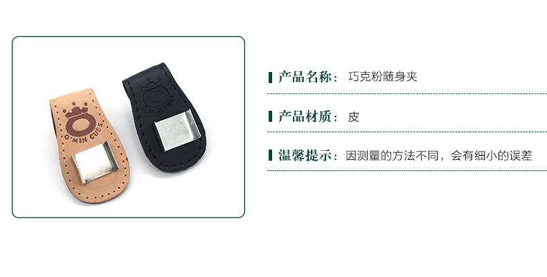 [绿草厂家批发]巧克粉随身夹 高档台球配件用品皮质擦粉盒巧克粉