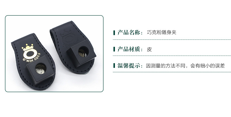 [绿草厂家]巧克粉随身夹 皮质擦杆粉夹斯诺克黑8台球配件用品定制